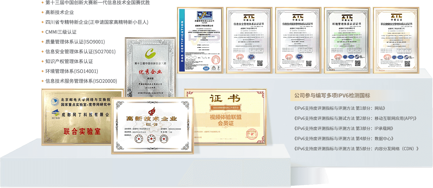 公司是中國寬帶質(zhì)量聯(lián)盟和國家視頻體驗聯(lián)盟會員,與北京郵電大學成立了"國家網(wǎng)絡質(zhì)量分析聯(lián)合實驗室",與工信部信通院、三大運營商研究院、各行業(yè)研究院、騰訊、阿里、華為、中興、等建立長期合作伙伴關系。擁有50+項國家發(fā)明或?qū)嵱眯滦图夹g專利及軟著,經(jīng)過多年自主研發(fā),形成了從運營商到企業(yè)網(wǎng)以及個人家庭網(wǎng)絡的智能網(wǎng)絡運維產(chǎn)品系列,為政府、運營商、金融、能源、交通、制造、互聯(lián)網(wǎng)等數(shù)十個行業(yè)客戶提供先進的下一代網(wǎng)絡質(zhì)量運維精細化管理解決方案。